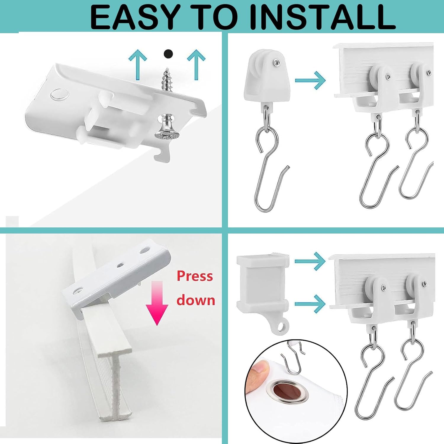 | Are curtains included? | Curtains are NOT included; however, we DO include curtain hooks to ensure that this track will work with whatever curtain you decide to pair with our system. In rare instances where your curtain does not work with the provided hooks, we do carry specialty hooks. |