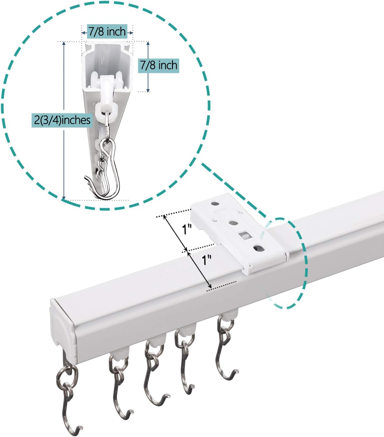 ChadMade Ceiling Track Kit with Hooks, Wall Mount Curtain Track, x-Large Size for Space 12ft - 18ft Wide, Single Window Rods Work with Grommet and Pinch Pleated Curtain