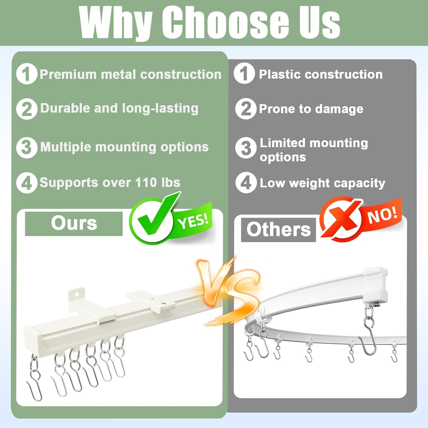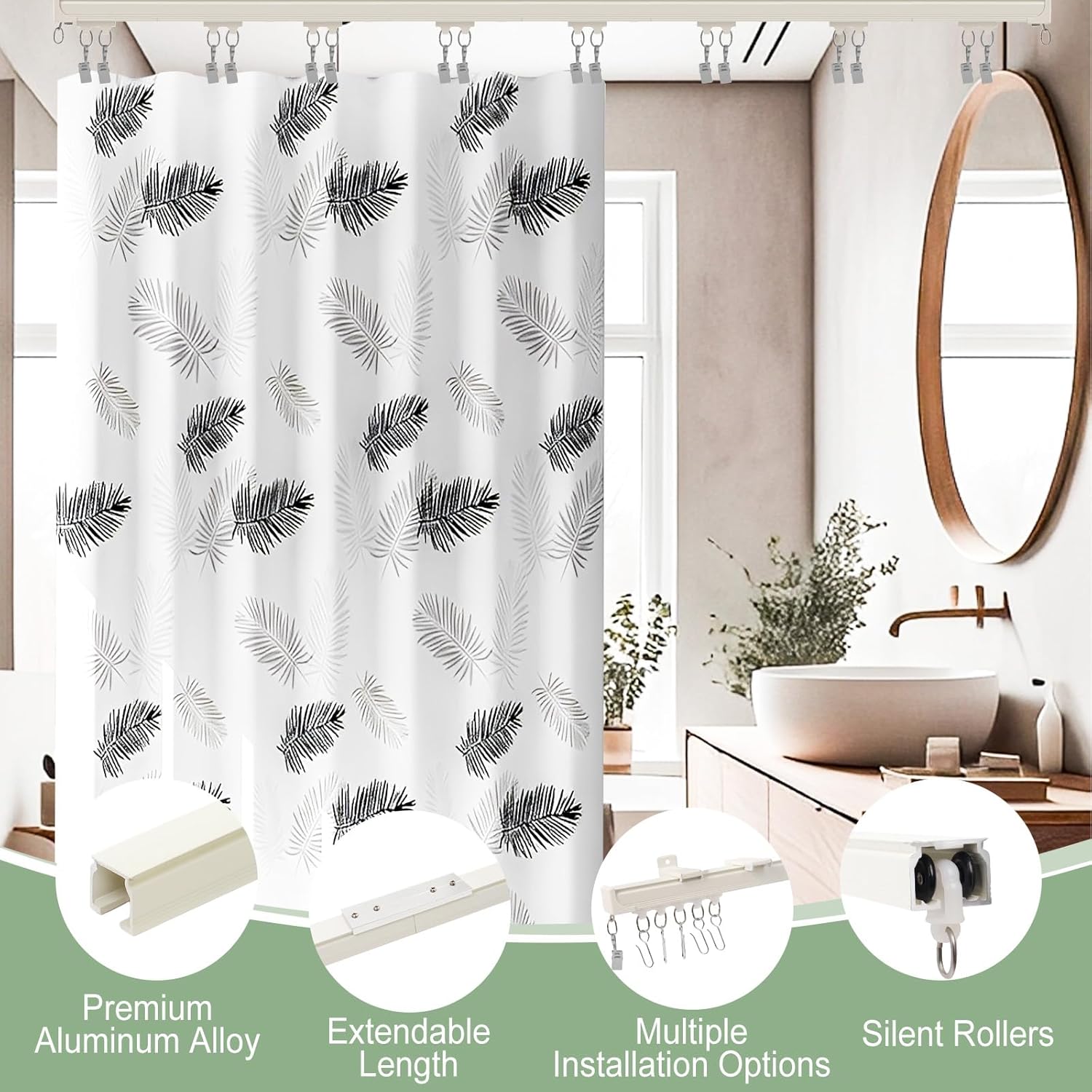Curtain Track Ceiling Mount, Heavy Duty Aluminum Curtains Rail with Silent Rollers, Ceiling/Wall Mount Curtain Track System with Hooks for Bedroom Shower Living Room Divider (12FT)