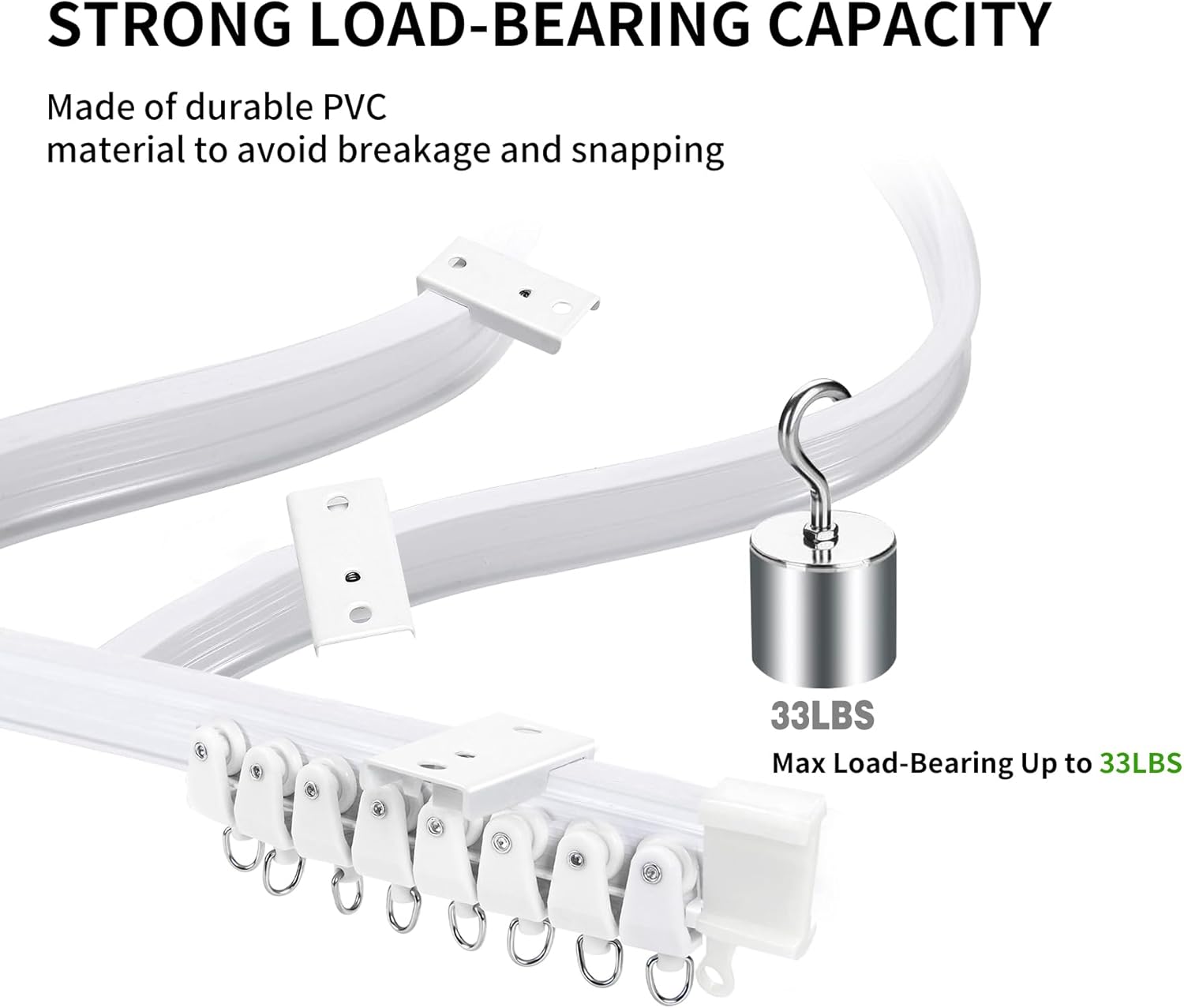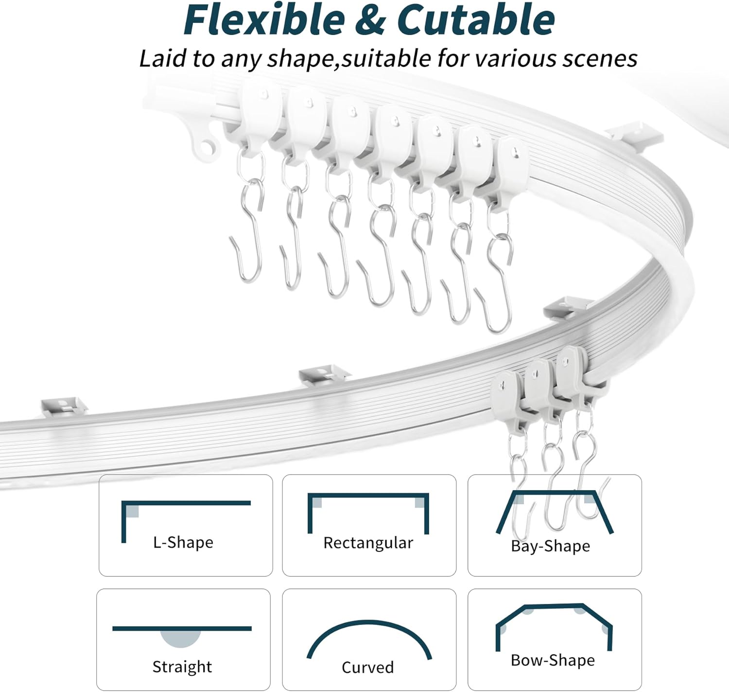Flexible Bendable Ceiling Curtain Track, 9.8ft (3m) Curved, PVC, Metal, Plastic & Stainless Steel, White, Ceiling Mounted