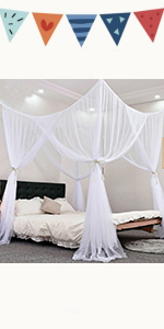 Easy installation: Collapsible design bed canopy which can be opened quickly to rotate and unfold quickly in a few seconds. With 1 Hanging hook and 40 inch hanging tether included,You don't need to worry about mosquito net accessories.